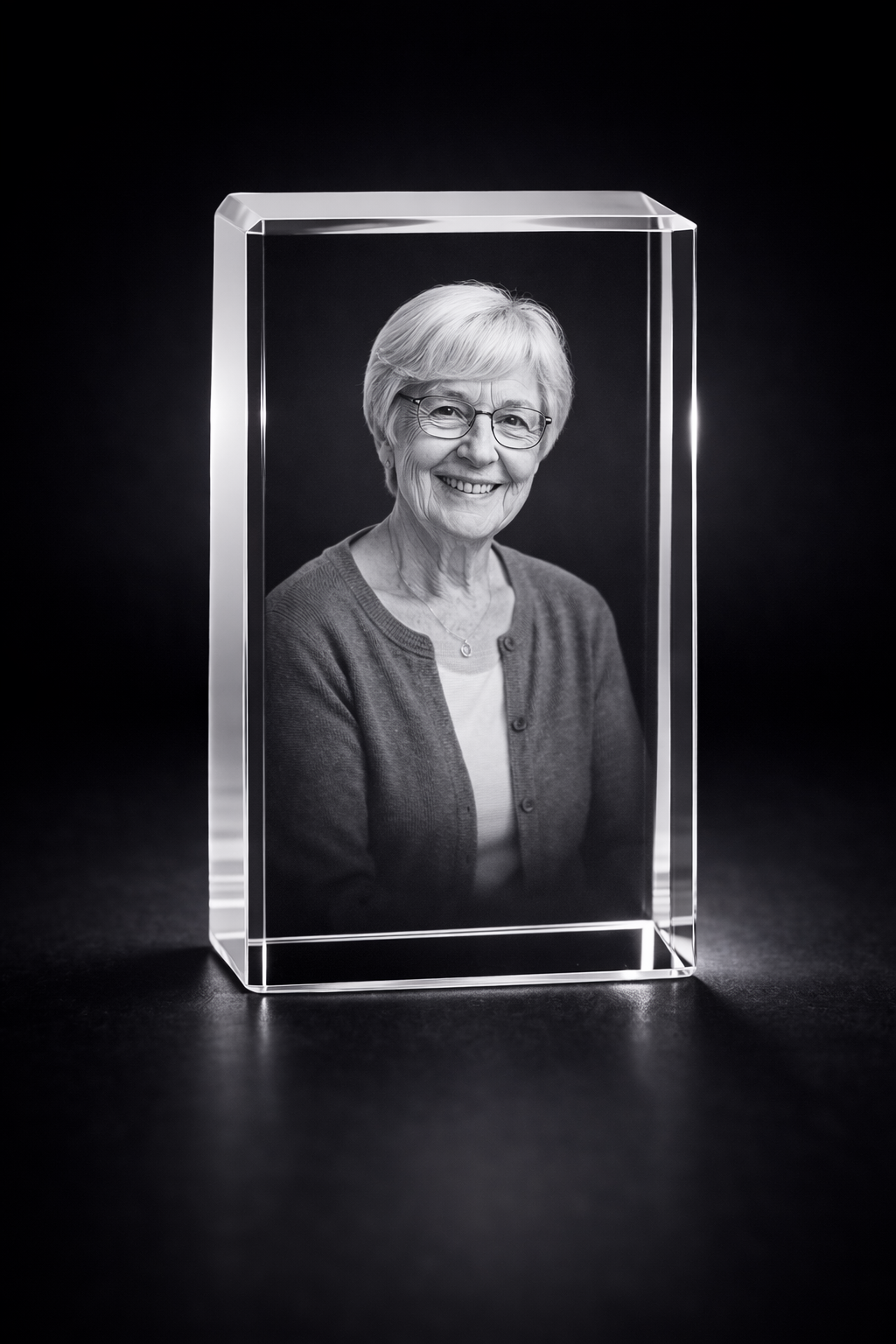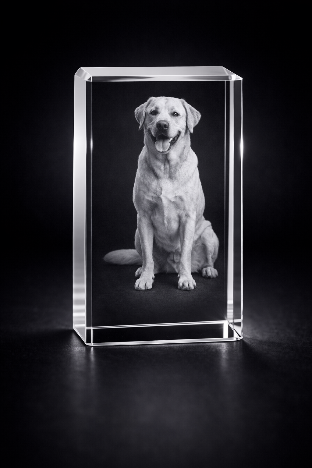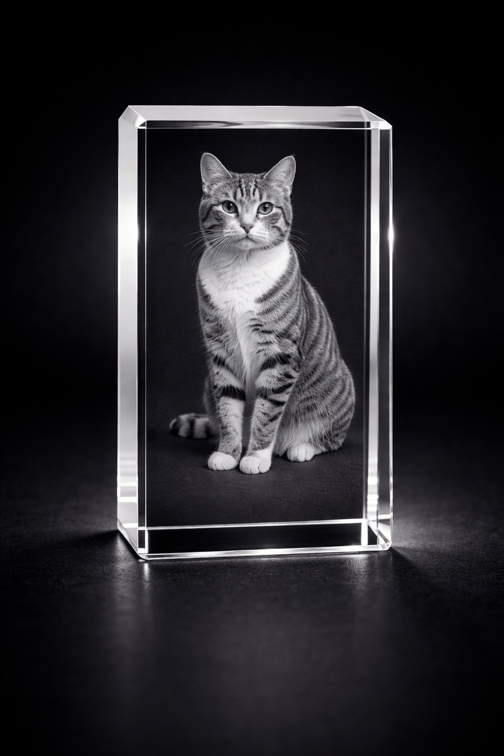 A timeless crystal block with deep 3D engraving, perfect for family and pet memories.