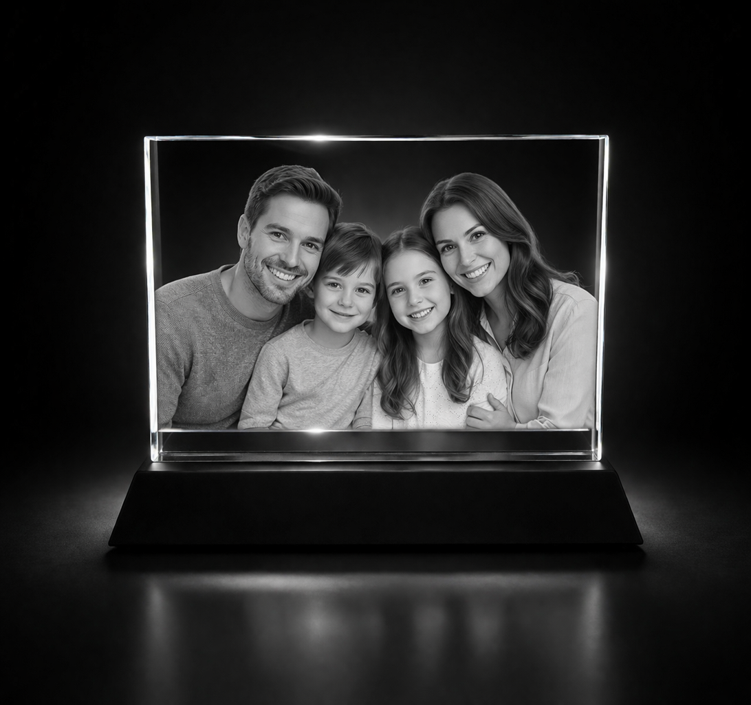 Please note .. you will find 3D crystals more expensive as the more people or pets you add, this is due to the time it takes our design team to convert each individual image to 3d format for engraving.