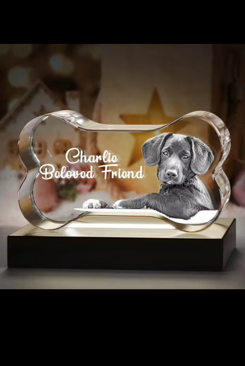 Simply Choose the crystal of your choice corresponding with the amount of persons/pets to be included, upload image, upload any message you would like engraved within. You can add a led light if required, let us do the rest.