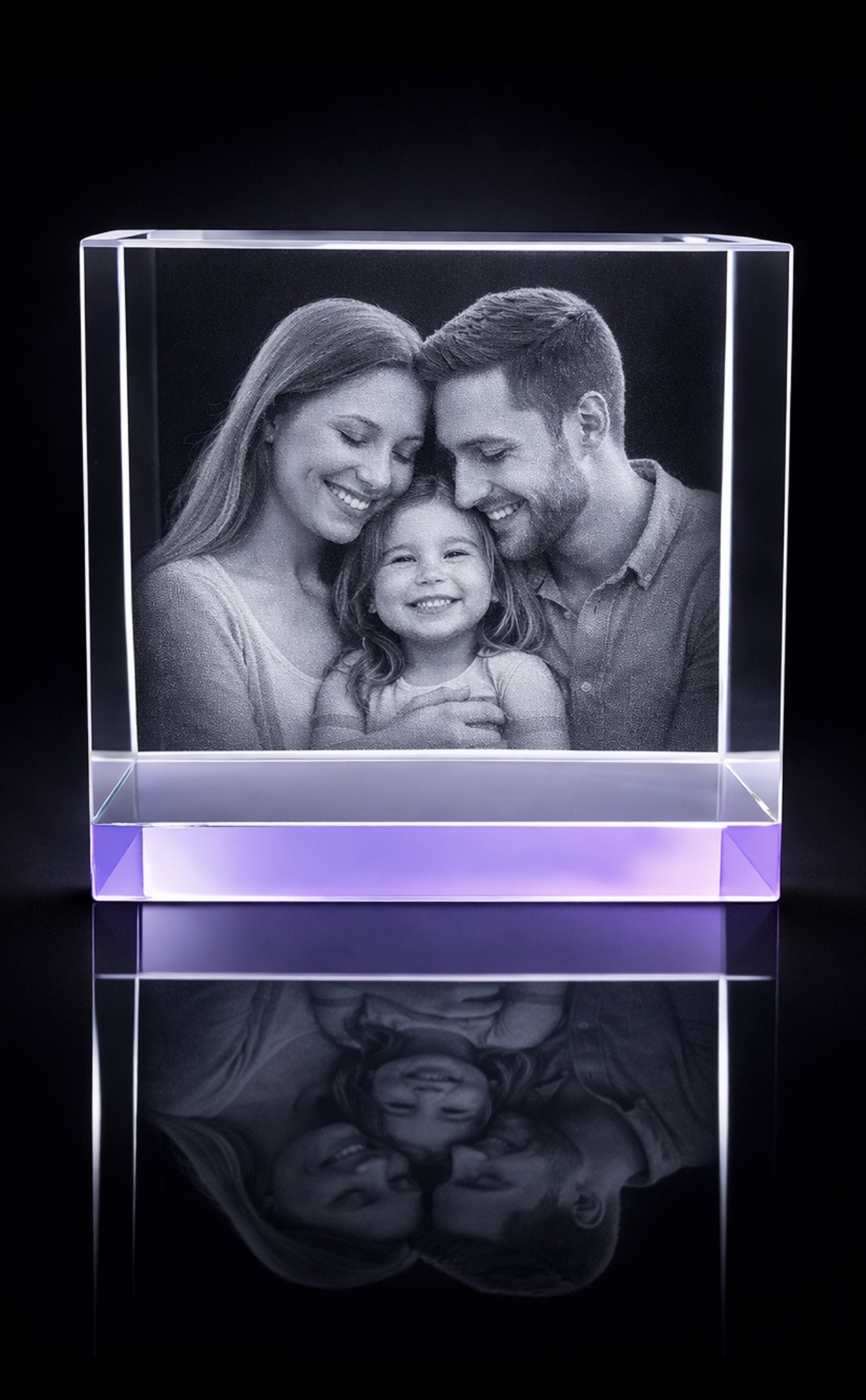 Why you’ll love it: • Subtle lilac-tinted premium optical crystal • Stunning 3D laser engraving from your photo • Size: 12 × 8 × 6 cm • Suitable for up to 4 people or pets • Looks beautiful with our optional LED light bases • Ideal for birthdays, anniversaries, memorials, and family gifts • A personal keepsake to treasure for years to come