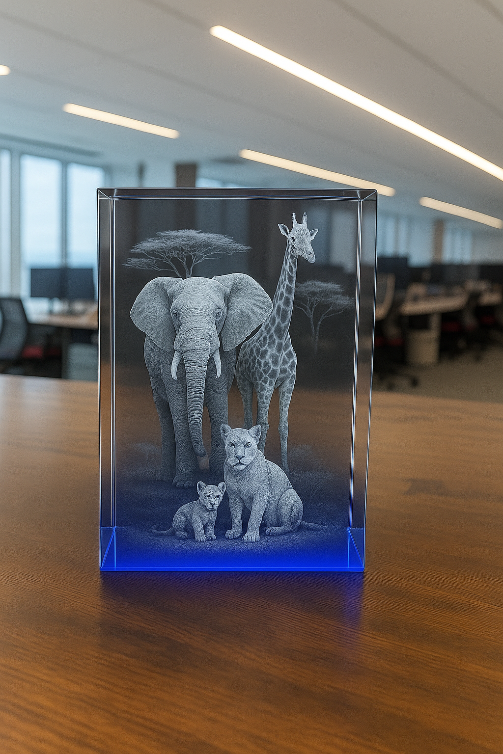 All our crystals are complimented with one of our LED lights, which enhances the fine engraving and detail. You can simply add a light from our site.
