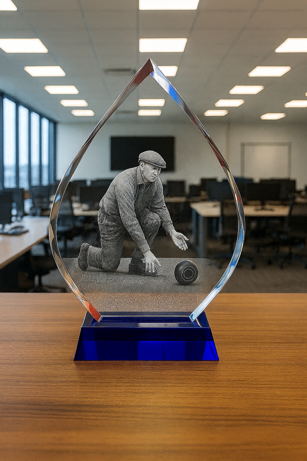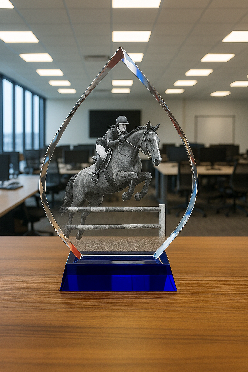 This Beautiful trophy will be engraved in 3D of any image you upload, whether it be a horse and rider, runner or any sport activity, we will convert the full image in 3D , giving a stunning trophy/award for any occasion.