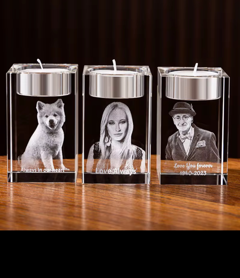 Simply Choose the crystal of your choice corresponding with the amount of persons/pets to be included, upload image, upload any message you would like engraved within. You can add a led light if required, let us do the rest.