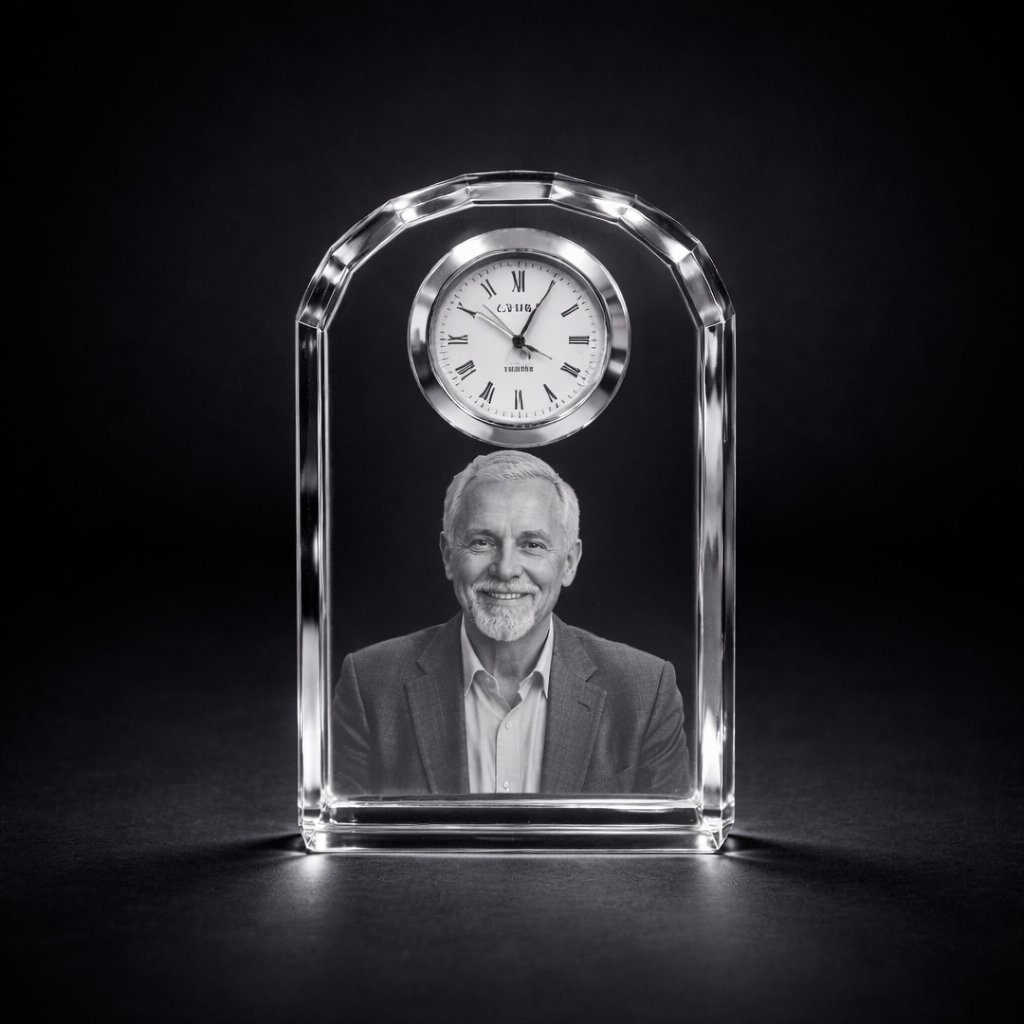 Capture your most treasured memories with the Kinloch Crystal Clockβa timeless piece that combines elegant design with advanced 3D engraving technology.