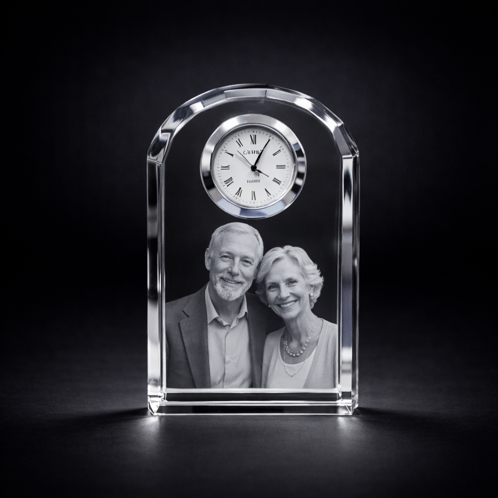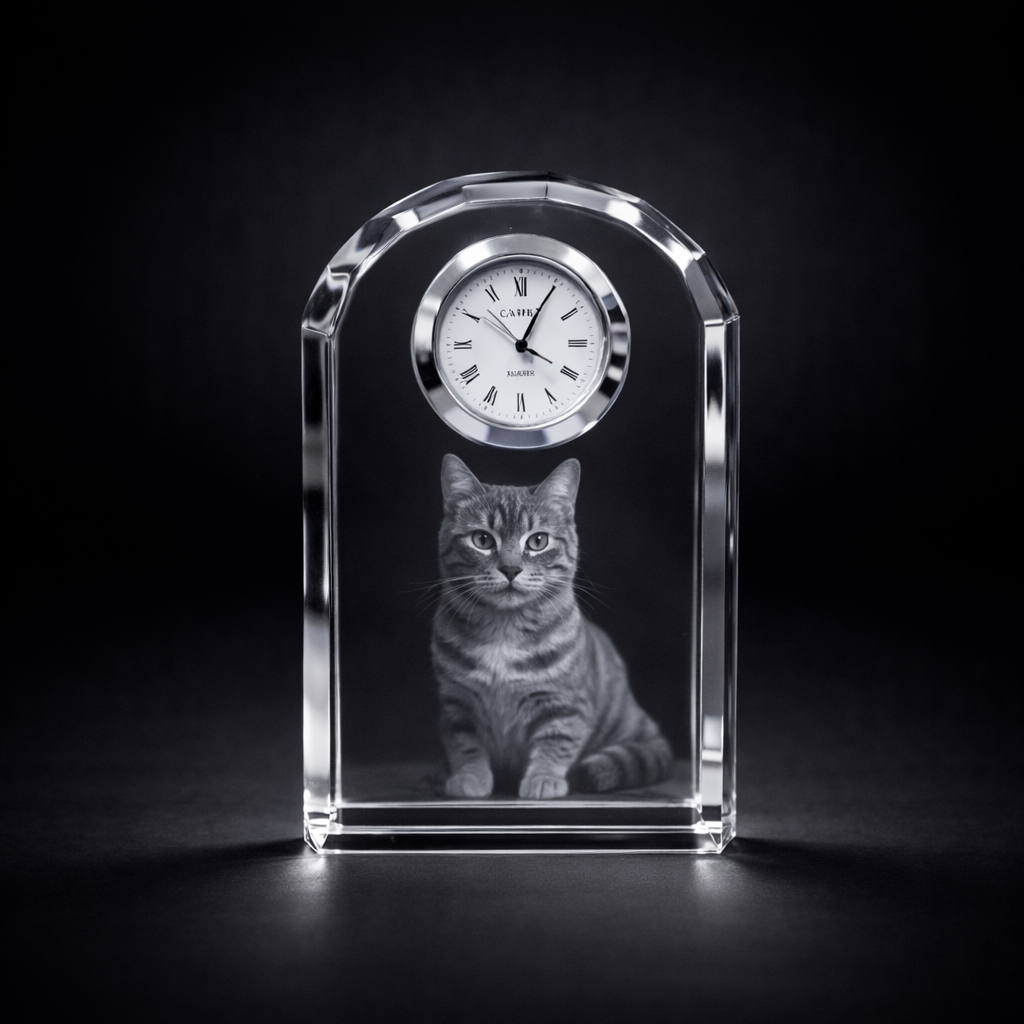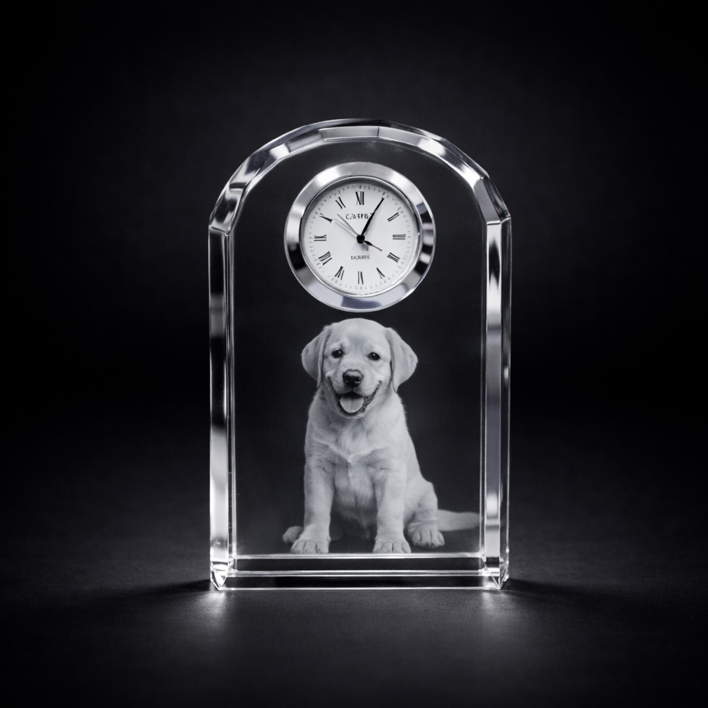 β Premium optical crystal with exceptional clarity β Precision quartz clock insert included β Lifelike 3D laser engraving with stunning depth β Suitable for up to 2 people or pets β Elegant, timeless design for home or office