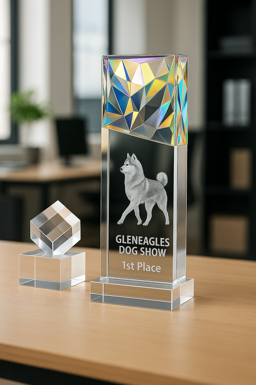 We can engrave any txt, figure, image, organisation, logo into this beautiful crystal, making it a perfect presentation, award or trophy,With the added feature of a 3d engraving inside.
